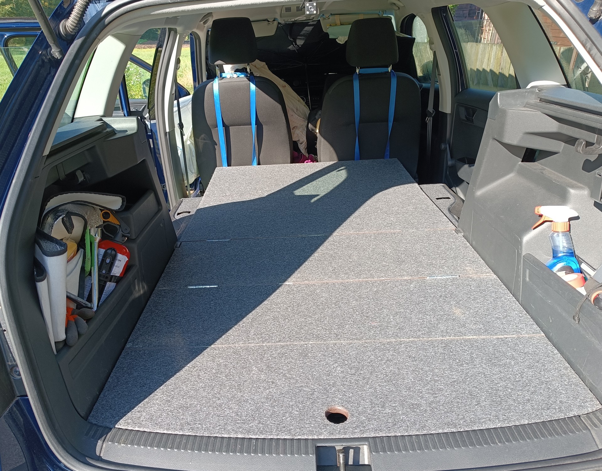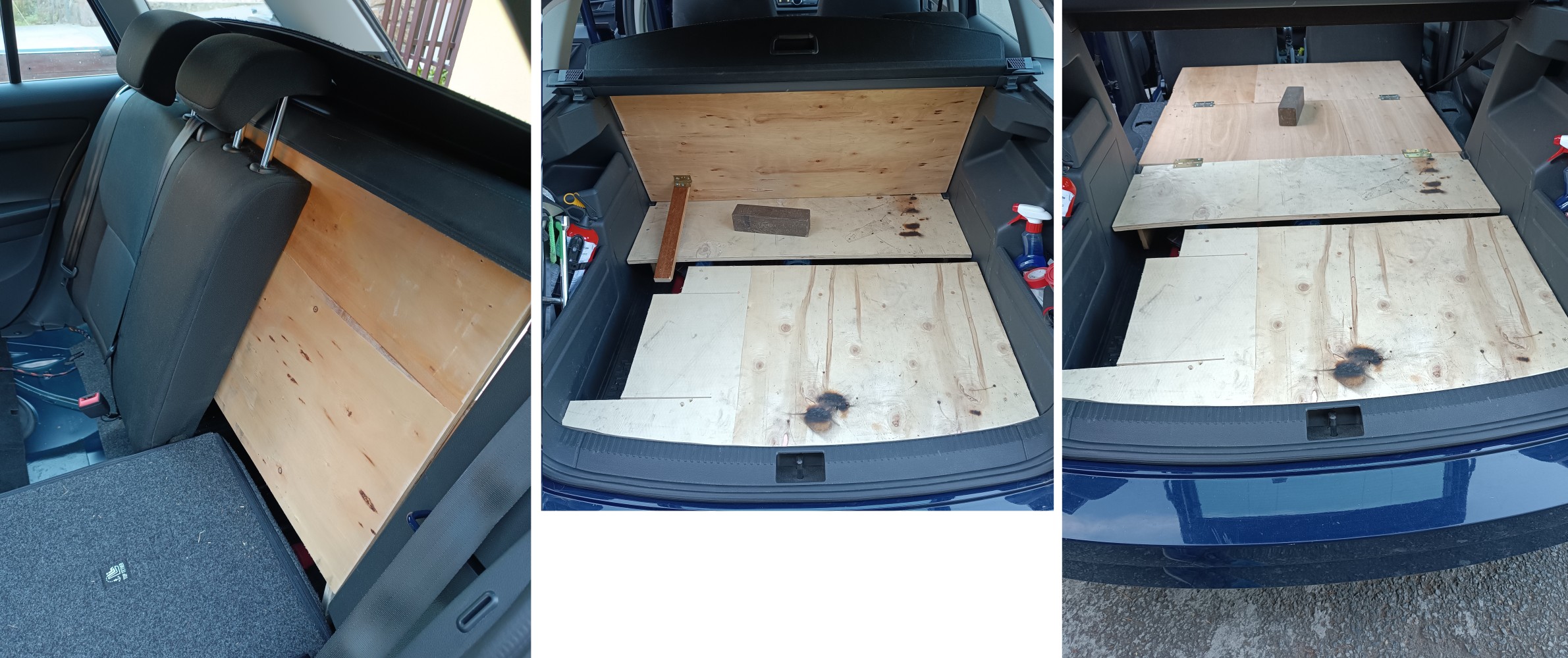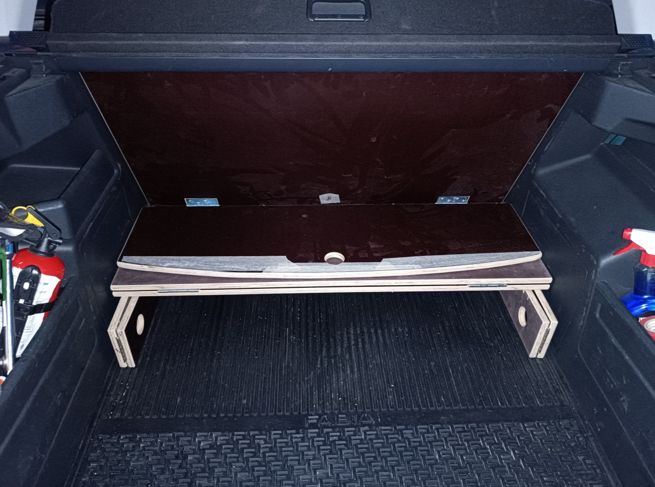 Celá "vestavba" může zůstat trvale v kufru auta, kde zabere jen 33cm na délku a 12cm na výšku. Rozložení je pak otázkou pár minut.