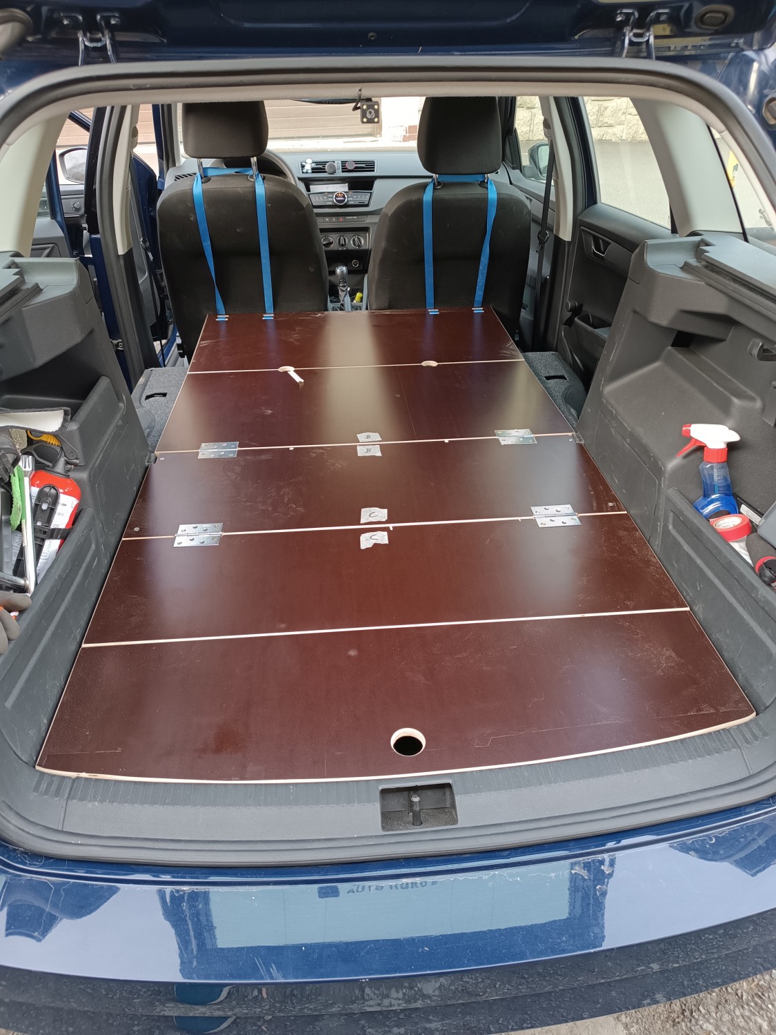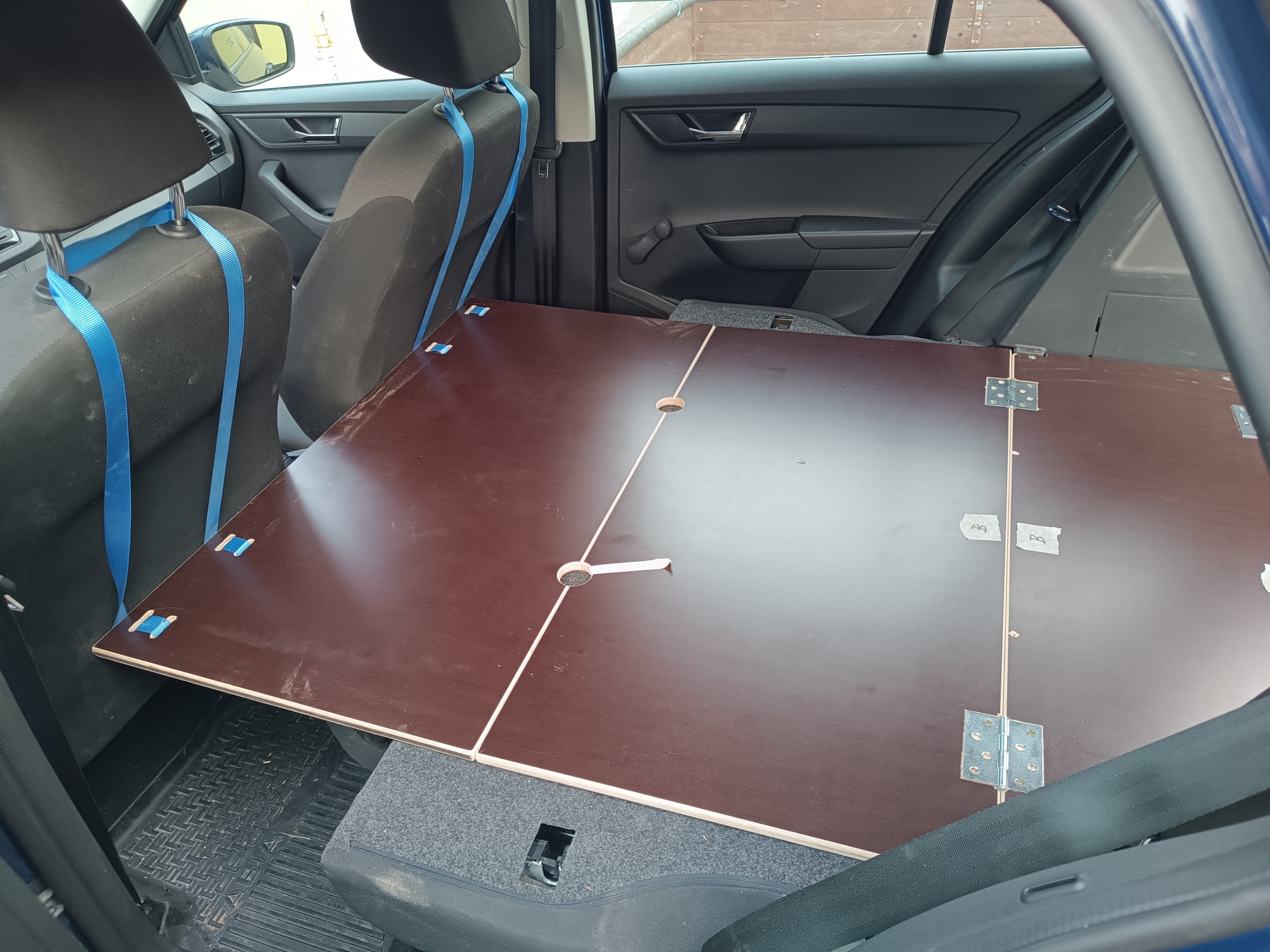Testování proběhlo výborně, nafukovací matrace z Číny, pod ni deka (pro jistotu, aby ji nepoškodily panty).
